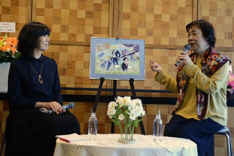 この対談は「ビジュアルからのイマジネーション」をテーマにしており、倉田は「心情を絵に託されるという部分は、どのようにアプローチしているのでしょうか」と質問。萩尾は「倉田さんの演出方法ときっと一緒です」と前置きをしてから「セリフは2行くらいでもキャラクターは内心たくさんのことを考えていて、その通りの表情ができるかな……と思いながら描くんです」「描いてるうちに『そうそう、これだよね』というところに行き着くのが面白い」と語り、日ごろから役者に演技指導をする倉田は深い同意を示す。また萩尾は「スタジオライフがトーマを再発見してくれたと思っています」と、舞台化に改めて感謝の言葉を述べた。