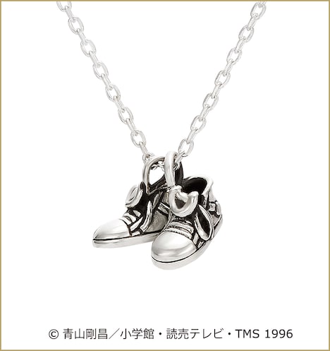 アクセサリーは全3種類で、コナンのキック力増強シューズと犯人追跡メガネ、怪盗キッドのシルクハットをモチーフとしたデザイン。コナンのアクセサリーはスニーカーのヒモやメガネのアンテナなどが細部まで精巧に再現されており、価格は各1万3000円。キッドのシルクハットにはブルーサファイアが埋め込まれたモノクルも付属し、こちらは1万7000円で販売される。