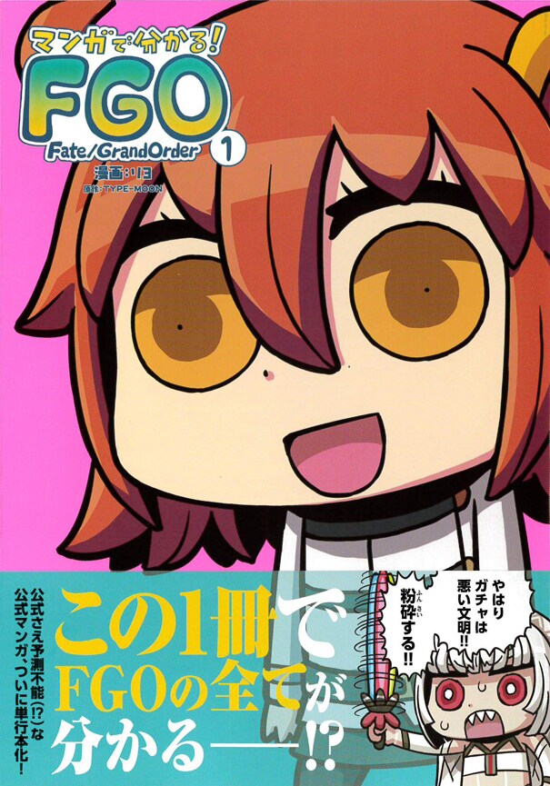 「マンガで分かる!Fate/Grand Order」は、ゲーム「Fate/Grand Order(FGO)」の公式サイトで連載されていた作品。「これって原作知ってる前提な感じのゲームですか」「だったら私アイドルとシャンシャンする作業に戻ります……」と、知識ゼロで「FGO」を始めた主人公がサーヴァントたちを相手にやりたい放題する様子を描き、メタなネタを展開しながらゲームの魅力を掘り下げる。単行本には描き下ろしの「OVA マンガで分かる!FGO」「劇場版 マンガで分かる!FGO」も収録。