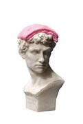 彫りの深い古代ローマ人をあらわす石像と、平たい顔族が開発したお風呂小物が融合したこの彫刻像フィギュア。シャンプーハットを被ったおなじみの彫刻に加え、300万円の錦鯉を抱えたもの、ラムネの瓶に指を突っ込んだものなど、原作に登場したシーンがフィギュア化された。