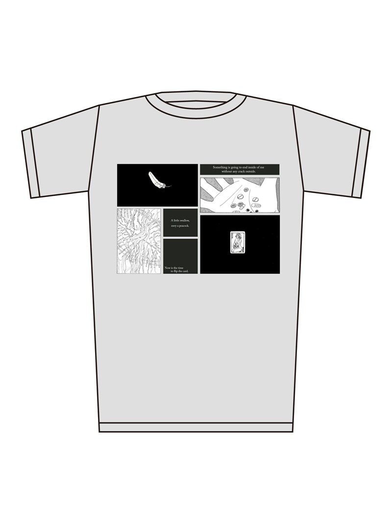 Tシャツはマンガのコマを組み合わせたものと、カラーイラストをあしらったものの2種類。それぞれ価格は5040円で、XS、S、M、Lの4サイズが用意されている。なお岡崎の作品が商品化されるのは、今回が初めて。