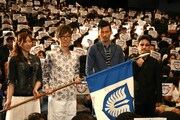 舞台挨拶には、ガッツ役の岩永洋昭、グリフィス役の櫻井孝宏、キャスカ役の行成とあ、そして窪岡俊之監督が登壇。作中で過激な濡れ場を演じた櫻井は「カップルで来たお客さんは、変な雰囲気になっていませんか」と会場の笑いを誘う。