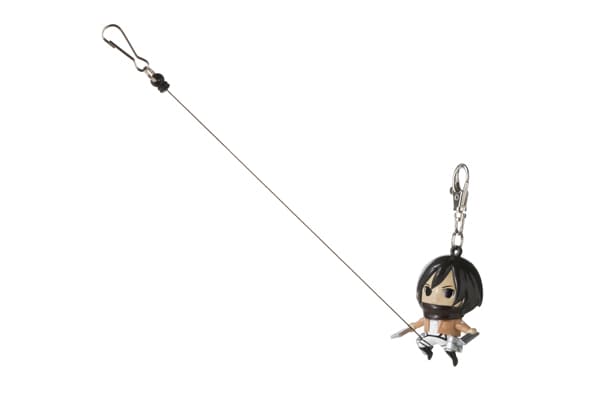 キーホルダーには立体機動装置のアンカーを再現した、リール式のワイヤーが付属。ワイヤーは、ミカサが腰に装着する噴出器の部分から引き出せるようになっている。ズボンやバッグなどに着けておけば、施錠・解錠の際にワイヤーを伸ばしてスムーズに鍵を使用できる機能的なアイテムだ。