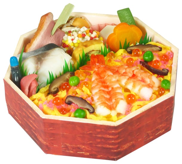 「湘南玉手箱」は、老舗弁当店大船軒とのコラボレーションによるもの。エビやイクラ、シイタケなどの食材を贅沢に使用したちらし寿しをメインに、鯵の押寿し、ほたて煮、鴨焼き串、エビ五色揚げ、煮物など、垂涎ものの豪華なおかずがずらり。