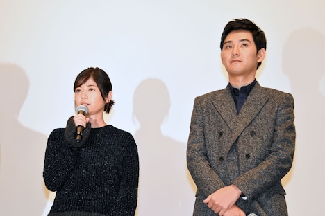 そんな真木は、劇中で英語のセリフを披露しているそうで「ド緊張していました。英語がしゃべれないので何回も練習して……」と苦労を語る。松田に「本当に英語が素敵で。下手したら日本語よりもうまいんじゃないかなってくらい」と茶々を入れられると、「もういい! 現場でもこうやっていじめてくるんですよ」と困った顔で返した。
