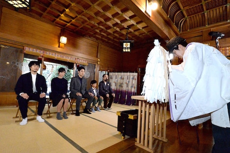 東京・小野照崎神社にて行われたヒット祈願イベントには、松田、大西、
