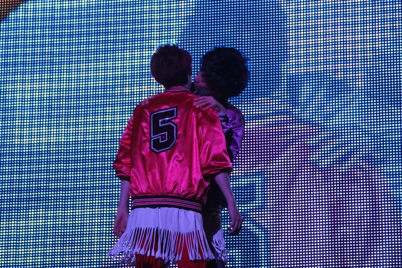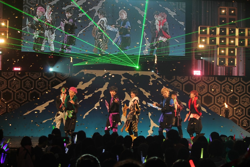 舞台の緞帳が下りると、切り絵師の柳家松太郎が登場し小話を繰り広げながら切り絵を始める。彼が作り上げたユースケの横顔に拍手が上がる中、突如1Fの客席に浴衣姿の人々が乱入し、そこには芸人の三瓶の姿も。その軍団が去ったかと思えば、舞台の幕が上がり「ikki!!!!!i!!」のPVと同様に時代劇を模したセットでコーイチ、タカシが寸劇を始めた。1Fの客席から現れたカイ、リョウガ、タクヤ、ユーキ、ユースケも加わると、彼らは軽い身のこなしで華麗な殺陣を披露する。コーイチが悪役を大根で倒したり、リョウガとカイの女装写真で悪代官の目をくらませたりとユーモアあふれる展開も盛り込みつつ、最終的にはユースケが悪代官を斬って大団円へ。そしてそのまま「ikki!!!!!i!!」へとなだれ込んだ。同曲のセンターを務めるユースケは、パフォーマンスを終えると肉声で「僕たちはここからまた新たな一歩を踏み始めます!」と力いっぱい叫んだ。