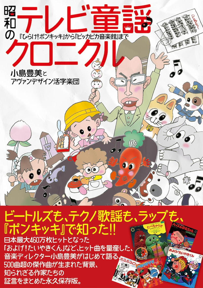 この本は「ひらけ!ポンキッキ」の楽曲制作や「ピッカピカ音楽館」の音楽プロデュースを手がけ、“テレビ童謡”からヒット曲を量産した元ポニーキャニオンの学芸担当ディレクター・小島豊美に、そのキャリアについてインタビューしたもの。日本最大のヒット曲「およげ!たいやきくん」や、「山口さんちのツトム君」「ホネホネ・ロック」「パタパタママ」など500曲以上が生まれた舞台裏を、小島へのインタビューと膨大な資料、そして証言者のコメントからあぶり出していく。日本の音楽史においてこれまでほとんど語られてこなかった“テレビ童謡”の裏側が、約400ページのボリュームでまとめられている。