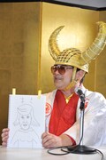 そしてバイト君本人が暴動の質問に答える形で、結婚に関して話し始めた。「今日7月15日、仏滅でしたけど新宿区役所に1人で行って(婚姻届を)出してきました」とすでに入籍を済ませたことを明かすと、カヲルは「普通は夫婦揃って行くんじゃないの!? なんで1人で!」と驚くが、バイト君は「遠距離恋愛なので……」と小声で経緯を説明。そしてお相手は既に7~8年にわたって交際してきた一般女性の「まきさん」であることを明かし、自筆の似顔絵を披露した。
