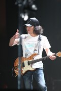 その後もイントロから観客をどよめかせた「フーガ」「おかしな2人」といった往年の名曲をパフォーマンスしたり、「オッサンマーチ」では歌詞の一部を「EBI」に変えたり、サービス精神旺盛なステージでファンを喜ばせたユニコーンの5人。なお「フーガ」ではEBIが伊勢海老を描いたボディのベースを弾き、「おかしな2人」ではメインボーカルをEBIが務めるなどレアな演出もあり、ひと際大きな歓声が起きていた。さらにMCでは奥田が来年行う予定のABEDONの「50祭」について言及し「総集編をお見せします。衣装替え6回! 8時間くらいかかると思います」と期待を煽る場面も。そして本編最後は「すばらしい日々」で穏やかに締めくくられた。