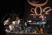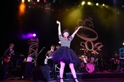 ステージ中央のキーボードが袖へと下げられ、牧野がハンドマイクに持ち帰ると、ここから怒濤のカバーコーナーへ。前半は古内東子の「誰より好きなのに」やMy Little Loverの「Hello,again~昔からある場所~」といった1990年代の名曲、AKINOの「創聖のアクエリオン」や坂本真綾の「ループ」などのアニメソングを中心としたセットリストとなっていたが、牧野はここで長年にわたり彼女のステージをサポートしているバンマス、松ケ下宏之(Key, G)のオリジナルナンバーもチョイス。「松ケ下さんの曲は胸を締め付けられるものがたくさんあって。“せつなメーカー”なんです」とソングライターとしての松ケ下の才能を絶賛し、本人の演奏をバックに2004年の楽曲「プラタナス」を披露した。