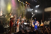 堂島孝平楽団は、堂島のさまざまな楽曲をホーン隊を含む大編成で表現するために2006年末に結成されたバンド。2007年にはライブアルバム「堂島孝平楽団デビュー」を発表し、以降も音楽フェスなどにたびたび登場する。今回の2DAYSライブでは八橋義幸(G / The Uranus)、鹿島達也(B)、岡本啓佑(Dr / 黒猫チェルシー)、sugarbeans(Key / Tommy & Sammy)、伊沢麻未(Cho / Tommy & Sammy)、新森春花(Cho)、湯浅佳代子(Tb /