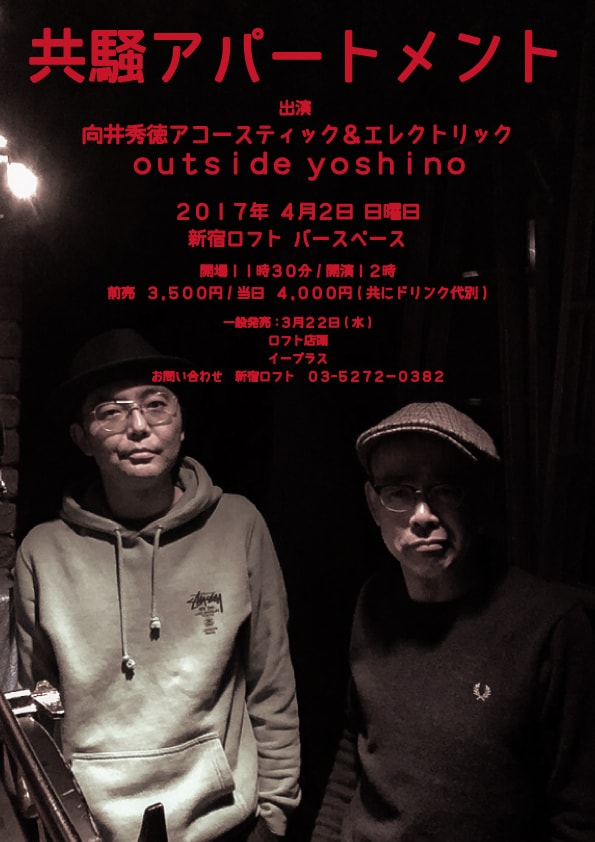 今回の「共騒アパートメント」も開演時間は昼の12時。3年ぶりの空間で2人がどのようなライブを見せてくれるのか楽しみなところだ。チケット販売はイープラスおよび新宿LOFT店頭にて3月22日より。