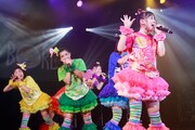 第2部のライブコーナーでは「今日はいつも以上に気合入ってます!(秋本)」「今日はノンストップだから! 水も飲まないからなー(咲良)」とメンバーはスタート前から気合十分。1曲目の「トリプルセブン」では間奏が通常より長い“ロングクラップver.”が披露され、そこから「首都移転計画」「ザ・スターダストボウリング」「ピザです!」と4曲が立て続けに歌われた。