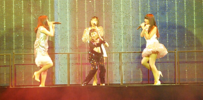 このユニットはこの日1日、15分限りの“超短命ユニット”として結成されたもの。会場が暗転し、Perfumeの「チョコレイト・ディスコ」でライブがスタート。ステージ下から4人がせり上がりで登場すると、横浜アリーナは大きな歓声に包まれた。