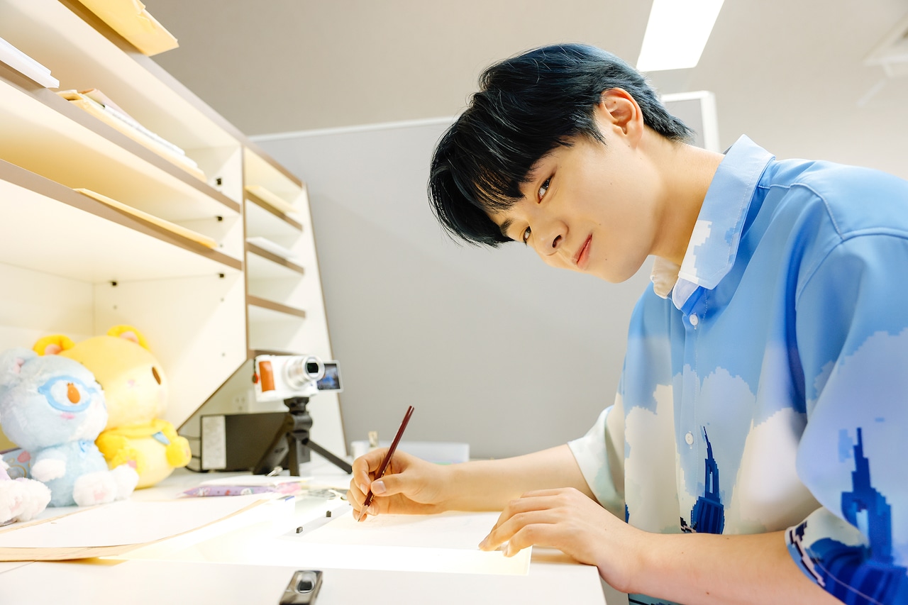 まずは頭のリボンから描き始めました。もともと絵を描くことはお好きな鶴房さん。松﨑さんいわく“鉛筆持ち慣れ”しているそうで、筆運びもほとんど迷いなく進めていきます。
