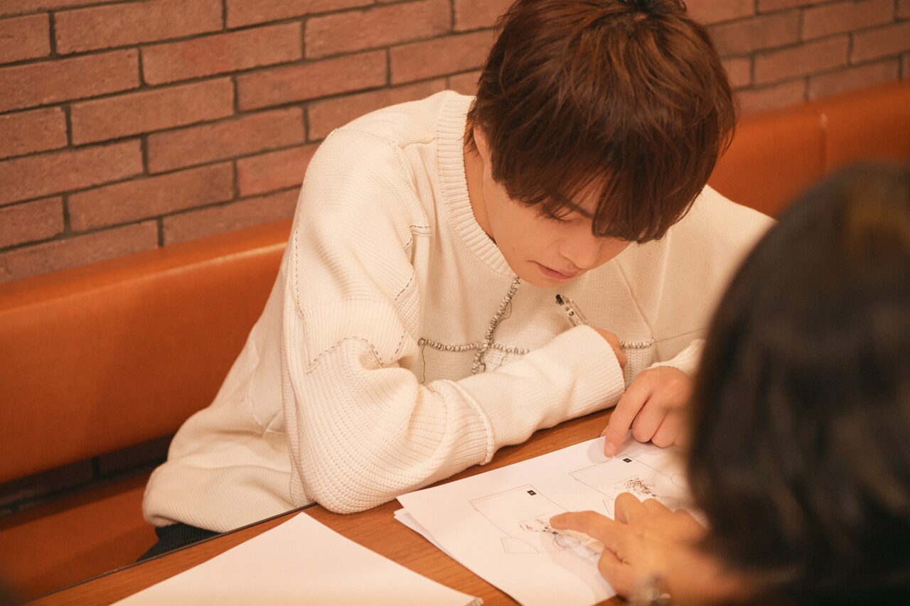 初回の打ち合わせから約2カ月後。メールでのやり取りを重ね、ようやく最終的なデザイン案が完成しました。ラインナップはTシャツ、フーディー、スウェット、ソックスの4アイテム。今回の打ち合わせではシルエットや素材、色などのディテールを詰めていきます。