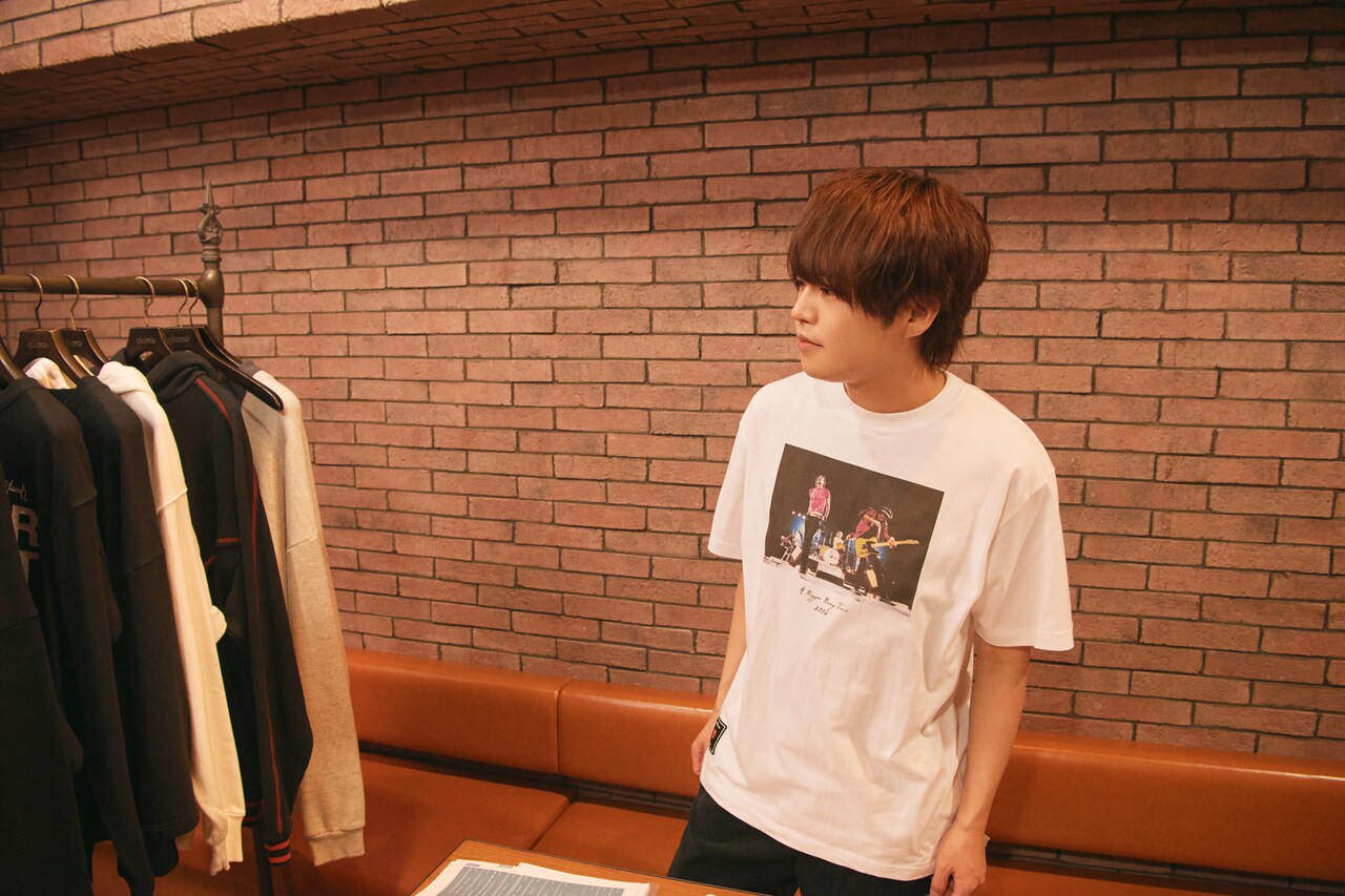 堀江さんは袖が短めより、5部丈ぐらいのほうが着やすいそう。glambの定番シルエットのTシャツを試しに着てみると、「もはやこれがいい!」と理想通りだった様子。ネックレスやオリジナルタグなどデザインの要素も多いため、変形シルエットではなく、ここはシンプルに定番オーバーサイズシルエットで進めます。
