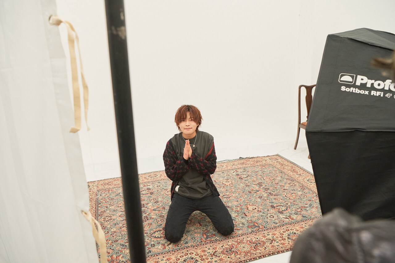 カメラマンが「『トレインスポッティング』の(ポスタービジュアルの)ポーズで」とリクエスト。続く「指先に力を入れて!」という指示にも真摯に応えます。