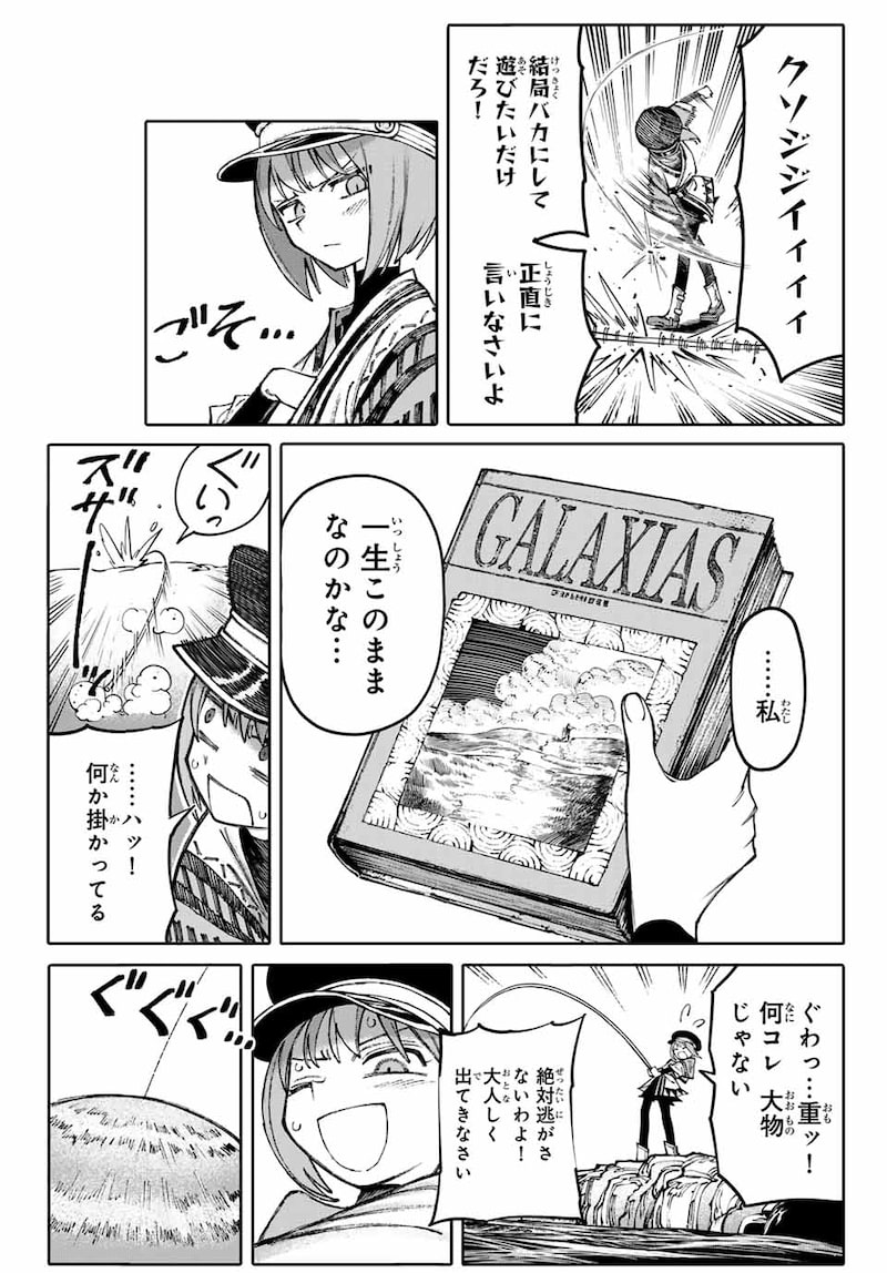 このマンガ、もう読んだ? 「GALAXIAS」高い画力と大胆なコマ割りで魅せる、王道ど真ん中のボーイミーツガール冒険譚 2024年11月18日 17:30 PR果坂青「GALAXIAS」 X Facebook はてなブックマーク 前へ 1 2 次へ 果坂青「GALAXIAS」1巻 Amazon.co.jp マガジンポケットで続きを読む! 果坂青(ハテサカアオ) 第108回週刊少年マガジン新人漫画賞で、投稿作「GALAXIAS」で最高賞にあたる特選を受賞。50年以上の歴史を持つ同賞の歴代最高得点を記録した。2024年7月に同作にて連載デビュー。マンガ家になる前はイラストレーターとして活躍しており、YOASOBI・AyaseやAdoなど著名なアーティストのアートワークを務めたこともある。熊本県出身。好きな食べ物は冷凍ポテト。果坂青(@AO_HATESAKA) / X 前へ 1 2 次へ この記事の画像(全5件) ©果坂青 / 講談社 X Facebook はてなブックマーク 果坂青のほかの記事 新連載 / 週刊少年マガジン / コメントあり 熱血キャプテン&内気な新入生コンビが甲子園を目指す、マガジンの青春野球譚 18 1月15日 1巻 / 週刊少年マガジン 人間の少女と記憶を失った青年の王道バトルファンタジー「GALAXIAS」1巻 19 2024年10月17日 新連載 / 週刊少年マガジン 冒険に憧れる少女が記憶をなくした青年と旅に出る、週マガ新連載「GALAXIAS」 44 2024年7月17日 リンク GALAXIAS - 果坂青 / 【第1話】HelloWorld!! | マガポケ 果坂青 (@AO_HATESAKA) | X 関連商品 果坂青「GALAXIAS(1)」 [漫画] 2024年10月17日発売 / 講談社 Amazon.co.jp タグ 週刊少年マガジン 試し読みあり 関連人物 果坂青