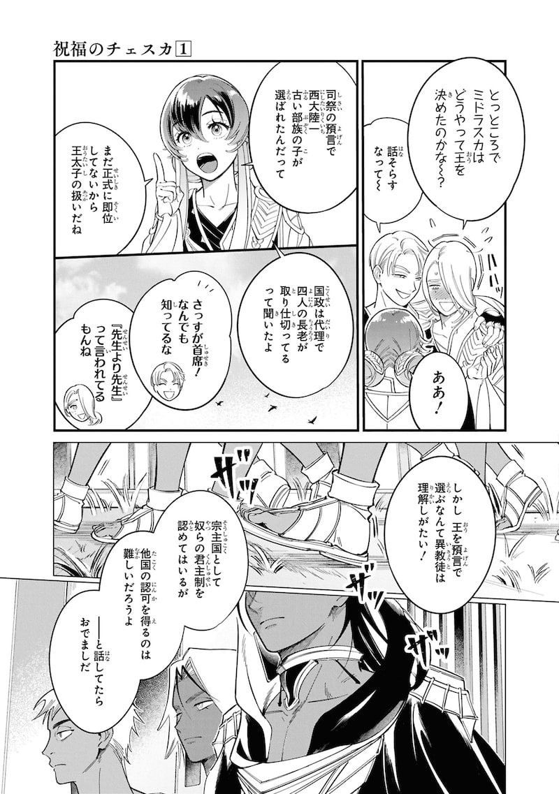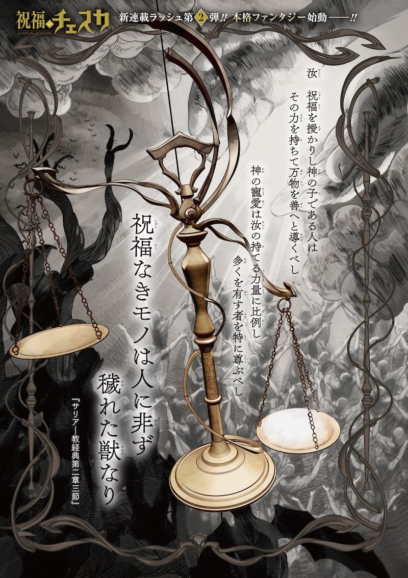 このマンガ、もう読んだ? 「祝福のチェスカ」言語が統一され、人々が平等になったら…会話の駆け引き描く“会議マンガ” 2025年1月20日 17:30 PR乃原美隆「祝福のチェスカ」 X Facebook はてなブックマーク 前へ 1 2 次へ 「祝福のチェスカ」第1話試し読み 乃原美隆「祝福のチェスカ」1巻 Amazon.co.jp 乃原美隆(ノハラヨシタカ) 兼業マンガ家。2022年「無抵抗主義」(祥伝社刊)にてデビュー。コミックZERO-SUM2024年5月号(一迅社)より「祝福のチェスカ」を連載中。学園内の背景は3Dモデルを自身で制作。乃原美隆(@n0harayoshi)/ X 前へ 1 2 次へ この記事の画像(全5件) ©乃原美隆/一迅社 X Facebook はてなブックマーク 関連記事 1巻 / 試し読みあり / 店舗特典 世界のルールが覆される…言語学の天才&虐げられし民の王子が織りなすファンタジー 47 2024年10月31日 新連載 / ゼロサム / 試し読みあり 言語学の天才少女と虐げられた民の王子を描く「祝福のチェスカ」、ゼロサム新連載 27 2024年3月28日 乃原美隆のほかの記事 ゼノン編集部4周年の読み切り13連弾!「刀剣乱舞 外伝 あやかし譚」新作も 海野つなみの読切がシリーズ連載化、なじみのカフェでおしゃべりする仲の3人を描く 「十三機兵防衛圏」梵辛、晴瀬ひろきら14名が参加の公式アンソロジー発売 池辺葵の新連載がフィーヤンで開幕、とある女系家族が社会の片隅で真摯に生きる 乃原美隆のプロフィール リンク ゼロサムオンラインで試し読み 紹介動画をチェック 関連商品 乃原美隆「祝福のチェスカ(1)」 [漫画] 2024年10月31日発売 / 一迅社 Amazon.co.jp [書籍版 / Kindle版] タグ ゼロサム ゼロサムオンライン 試し読みあり 関連人物 乃原美隆