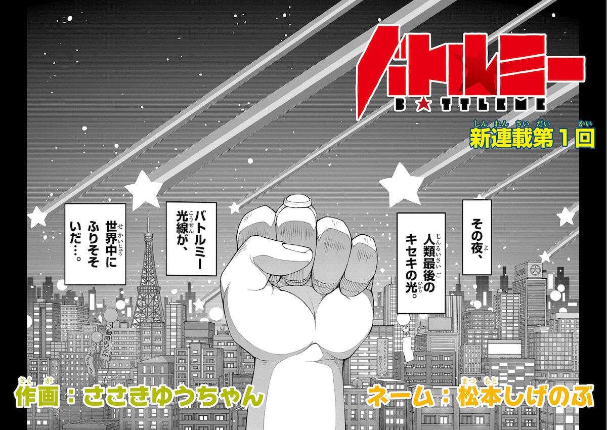 このマンガ、もう読んだ? 「バトルミー」ボケっとしてたら、今のままだぞ!! “世の中の理不尽”に向けて強力パンチを放つぶっ飛びマンガ 2025年1月31日 18:30 PRささきゆうちゃん、松本しげのぶ「バトルミー」 X Facebook はてなブックマーク 前へ 1 2 次へ 「バトルミー」を週刊コロコロコミックで読む! ささきゆうちゃん (@sasaki_yuchan) | X ささきゆうちゃん(ササキユウチャン) 2014年に第25回スクウェア・エニックスマンガ大賞にて準大賞を受賞。月刊ビッグガンガン(スクウェア・エニックス)に短編読み切り「きらきら光る姫」が掲載。代表作は「異世界チートブレイカーズ」「怪異撲滅ミンチちゃん」「フェイク・リベリオン」「組長の娘は異世界で最強の組を作るため極道無双はじめました」など。2024年には小学館の週刊コロコロコミックで「バトルミー」の連載がスタートした。松本しげのぶ(マツモトシゲノブ) 1990年に第31回小学館新人コミック大賞の児童部門佳作を受賞。1991年、月刊コロコロコミック(小学館)に「すーぱーぷよぷよ」が掲載。代表作に「デュエル・マスターズ」「おどろき!ももの木笑店街」。現在は月刊コロコロコミックにて「デュエル・マスターズWIN」を連載中。ネーム原作として「ウルトラマン アロング・ケイム・ア・スパイダーマン」「Duel Masters LOST」「バトルミー」に参加している。 前へ 1 2 次へ この記事の画像(全8件) ©松本しげのぶ/ささきゆうちゃん/小学館 X Facebook はてなブックマーク 関連記事 1巻 / コロコロコミック / Webマンガ 孤独になった少女が理不尽な人間を殴って殴って殴りまくる「バトルミー」1巻 34 3月28日 ささきゆうちゃんのほかの記事 週刊コロコロコミックがより読みやすくリニューアル、6本の新連載もスタート 異世界の姫と勇者のタッグが悪逆非道の転生者たちに対抗「異世界チートブレイカーズ」 国を守りたい王女&元勇者が異世界転生者とバトル、「異世界チートブレイカーズ」開幕 最強ヤクザ娘が異世界転生、苦しむ魔族のため立ち上がるささきゆうちゃん新作1巻 ささきゆうちゃんのプロフィール リンク バトルミー 【作画】ささきゆうちゃん 【原作】松本しげのぶ | 週刊コロコロコミック ささきゆうちゃん (@sasaki_yuchan) | X タグ コロコロコミック 試し読みあり 関連人物 ささきゆうちゃん 松本しげのぶ