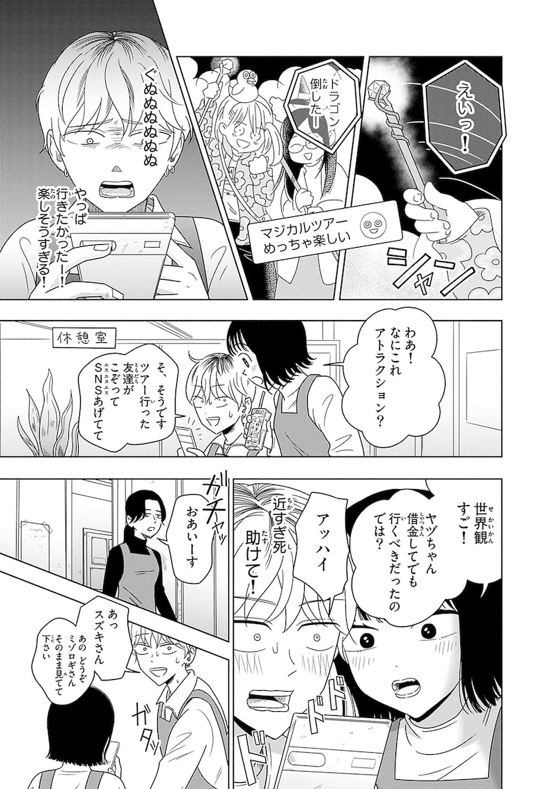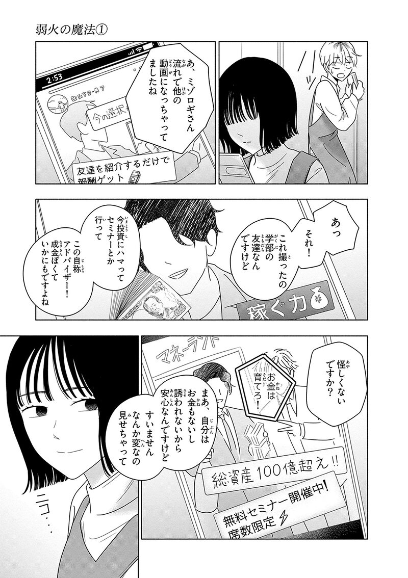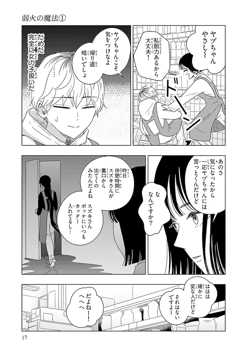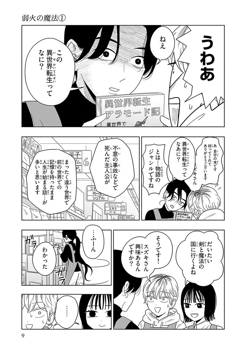 このマンガ、もう読んだ? 「弱火の魔法」“弱火”のようにじっくりと確実に人の心を癒す、衿沢世衣子が描く等身大の逆・異世界マンガ 2025年2月10日 12:10 PR衿沢世衣子「弱火の魔法」 X Facebook はてなブックマーク 前へ 1 2 次へ 衿沢世衣子「弱火の魔法」1巻 Amazon.co.jp 「弱火の魔法」の続きを読む! 衿沢世衣子(エリサワセイコ) 10月13日生まれ、東京都出身。2000年に「カナの夏」でデビュー。「ちづかマップ」「制服ぬすまれた」などを発表後、現在は月刊flowersで「弱火の魔法」、増刊flowers(ともに小学館)で「光の箱」を連載中。衿沢世衣子 (@knutknut) | X衿沢世衣子オフィシャルサイト 前へ 1 2 次へ この記事の画像(全6件) ©衿沢世衣子/小学館 X Facebook はてなブックマーク 関連記事 1巻 / flowers / 試し読みあり スーパーの同僚は大魔法使い?「制服ぬすまれた」衿沢世衣子の新作「弱火の魔法」1巻 46 2月10日 衿沢世衣子のほかの記事 マンガ編集者の原点 Vol.18 「ミステリと言う勿れ」「マロニエ王国の七人の騎士」の永田裕紀子(小学館 月刊flowers編集部) 短編マンガを巡る出版業界の動向は?衿沢世衣子と山脇麻生のトークイベントが今年も 「数字であそぼ。」クリアしおりがflowersに 衿沢世衣子&緒川みのるの新連載も 衿沢世衣子が語る短編の魅力、感動のあまり“封印”した本 短編マンガフェアに合わせ 衿沢世衣子のプロフィール リンク 「弱火の魔法」の続きを読む! 衿沢世衣子 (@knutknut) | X 衿沢世衣子オフィシャルサイト 関連商品 衿沢世衣子「弱火の魔法(1)」 [漫画] 2025年2月10日発売 / 小学館 Amazon.co.jp タグ 1巻 flowers 試し読みあり 関連人物 衿沢世衣子