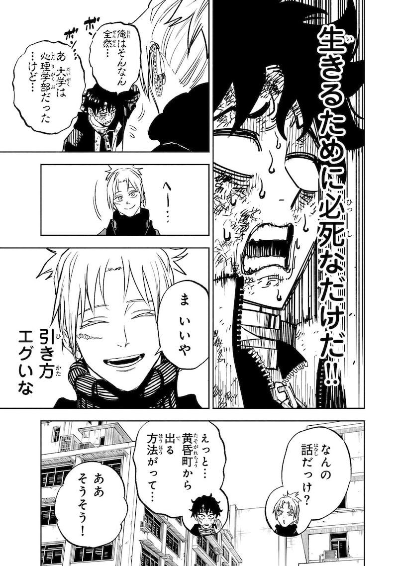 このマンガ、もう読んだ? 「黄昏町プリズナーズ」死刑囚が殺し合う無法地帯で“策略”の才能が覚醒する、個性派キャラ勢揃いの異能サバイバル 2026年4月8日 15:00 PR藤モロホシ・ショーキ名古屋「黄昏町プリズナーズ」 X Facebook はてなブックマーク 前へ 1 2 次へ 藤モロホシ・ショーキ名古屋「黄昏町プリズナーズ」3巻 Amazon.co.jp 「黄昏町プリズナーズ」緋花が登場する第3話を試し読み! 全員、目がやばい…!! 異能デス・サバイバル・アクション「黄昏町プリズナーズ」PV 「黄昏町プリズナーズ」試し読み第1話 藤モロホシ(フジモロホシ) 作画担当。前作「不遇職【鑑定士】が実は最強だった~奈落で鍛えた最強の【神眼】で無双する~」で連載デビュー。同作は2025年1月にTVアニメ化を果たしている。藤モロホシ (@10mrhs) | Xショーキ名古屋(ショーキナゴヤ) 原作担当。「黄昏町プリズナーズ」がデビュー作。ショーキ 名古屋 (@shoki758) | X 前へ 1 2 次へ この記事の画像(全6件) ©藤モロホシ・ショーキ名古屋/講談社 リンク 黄昏町プリズナーズ | 【第1話】死刑囚の町 / マガポケ | 少年マガジン公式無料漫画アプリ X Facebook はてなブックマーク フォローして最新ニュースを受け取る 藤モロホシ マガジンポケット 試し読みあり 藤モロホシのほかの記事 週刊少年マガジン / バレンタイン マガジンのメンズ陣から赤い薔薇をプレゼント、バレンタインフェアが全国の書店で 34 2月14日 1巻 / マガジンポケット 死刑囚だけが収監される町で生き残りをかけたサバイバル「黄昏町プリズナーズ」1巻 15 2025年10月9日 関連商品 ショーキ名古屋「黄昏町プリズナーズ(1)」 [漫画] 2025年10月9日発売 / 講談社 Amazon.co.jp タグ マガジンポケット 試し読みあり