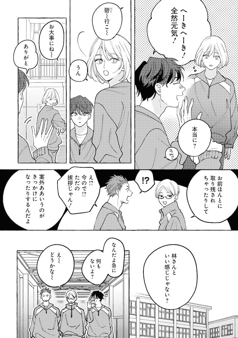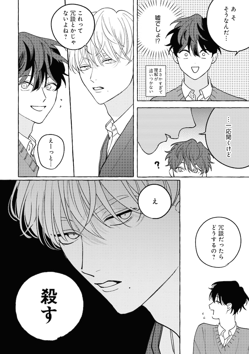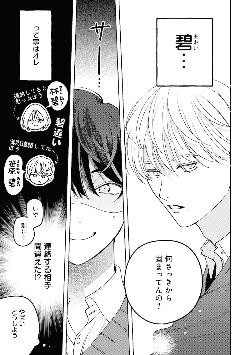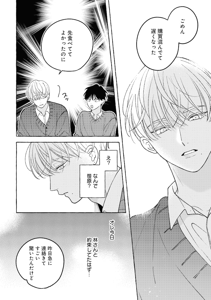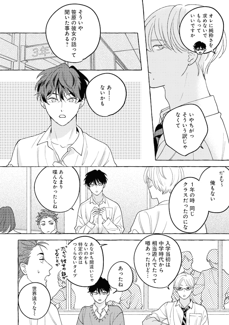高校3年生の熊井は、彼女を作って最後の青春を謳歌したいと思いつつ、過去のトラウマからなかなか一歩踏み出せずにいた。そんなある日、仲のいい女子が最近彼氏と別れたと聞きスマホで連絡してみると、とんとん拍子でお付き合いすることに。意気揚々と待ち合わせ場所に向かうと、そこに現れたのは学校一のモテ男子・笹原。どうやら熊井は、間違えて笹原にメッセージを送っていたようで……。