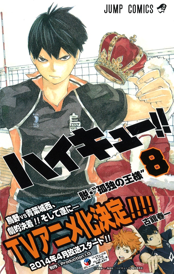 これは本日10月4日に発売された最新8巻の帯にて発表されたもの。2014年4月からの放送を予定しており、制作は「攻殻機動隊」シリーズなどで知られるProduction I.Gが手がける。続報は、同作の公式サイト「ハイキュー!!.com」や週刊少年ジャンプ(集英社)誌上にて発表されていく予定だ。