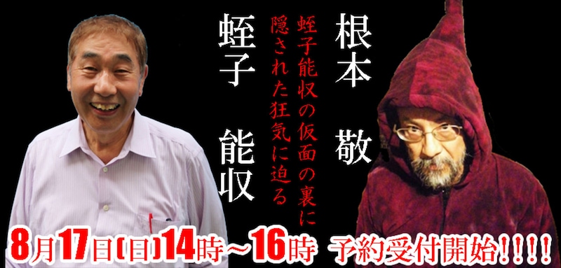 このトークショーは「蛭子能収解体新書」と題して、蛭子の秘めたる狂気について根本が語るというもの。参加費2000円で、定員は100名。予約申し込みの詳細は、鞆の津ミュージアムの問い合わせフォームにて確認を。