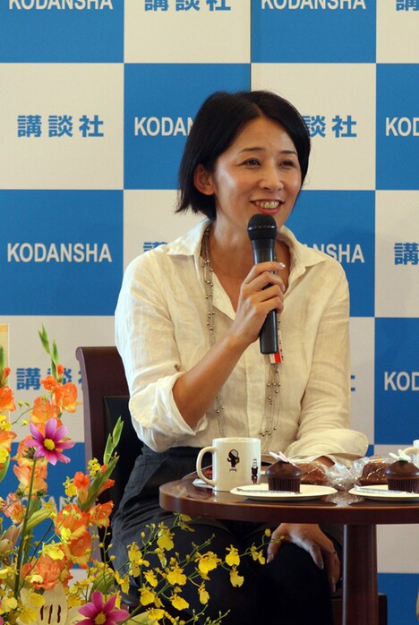 お茶やお菓子を食べながら、海野のこれまでを振り返るこのイベント。会場には150通近くの応募の中から当選した50名のファンが来場した。テーブルにはかわいらしいカップケーキなどのお菓子や、「くまえもん」のイラストがあしらわれたオリジナルマグカップが用意され、和やかな雰囲気で“お茶会”がスタートした。