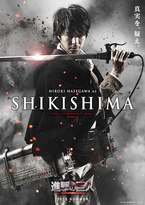 そして映画版の新キャラクターも多数登場。これは諫山や監督、脚本家が実写映画版のストーリーを構築するにあたって、物語にふさわしいキャラクターへのハイブリッド化を目指した結果だという。長谷川博己は“人類『最強』の男”シキシマを、松尾諭は“慈愛深き豪傑”サンナギを、渡部秀は“悲しみの守護星”フクシを、水崎綾女は“勇猛なる母性”ヒアナを、武田梨奈は“愛に生きる本能”リルを、ピエール瀧は“嘆きの先導者”ソウダを、國村隼は“『闇』を統べる者”クバルを演じる。劇中のビジュアルは11月28日より上野の森美術館にて開催される「進撃の巨人展」にて、ポスターとして一挙展示される予定だ。