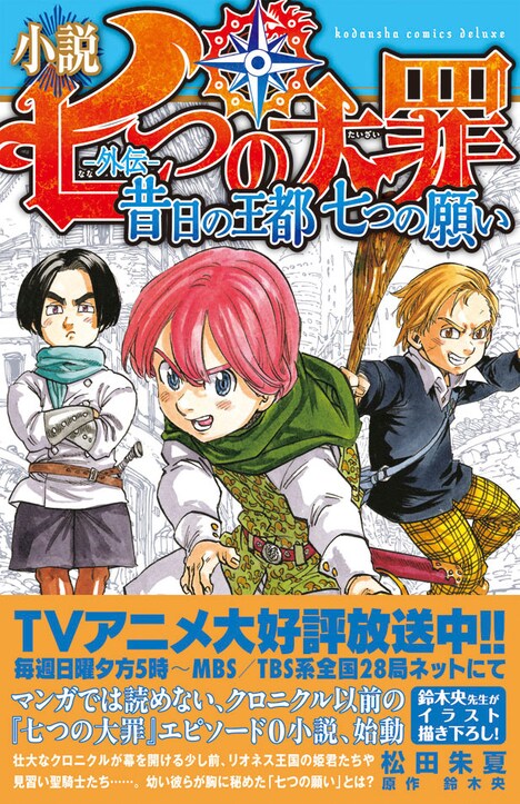 また本日、「七つの大罪」のノベライズ版も2冊同時に発売された。松田朱夏による「小説 七つの大罪 ―外伝― 昔日の王都 七つの願い」は本編の前日譚。ギルサンダーとハウザーの出会いや、ギルサンダーが心に秘めたマーガレットへの思い、第3王女・エリザベスの出生の秘密を知った姉・ベロニカの心の痛みなど、マンガでは語られなかったエピソードが明かされる。鈴木は「あの聖騎士たちにこんな子供時代が!? 心ほっこりワクワク必至の一冊です!!」とコメントを寄せた。