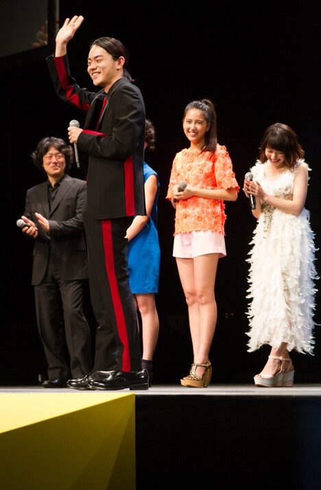 続いて赤羽業役を演じた菅田が挨拶をしようと歩み出ると、すかさず山田から「ここで将暉が一発芸やります」とキラーパスが。これを受け菅田は「あなたのもとへ真っ先に、すだまっさきで~す」と挨拶。山田からは「素晴らしい根性でございます」との評価を受けるも、周囲の反応にひとりうなだれていた。