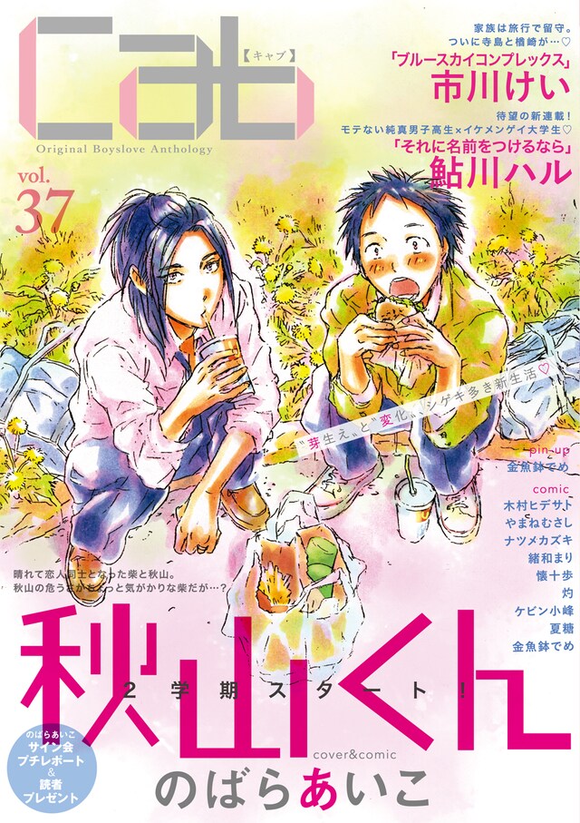「新装版 秋山くん」の発売を記念し、2月にサイン会を行ったのばら。今号では前号より4年ぶりに続編がスタートした「秋山くん」が表紙を飾る。また同作のマグネットを抽選で5名に、クリアポストカードを10名にそれぞれプレゼント。応募の詳細は誌面にて確認を。