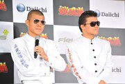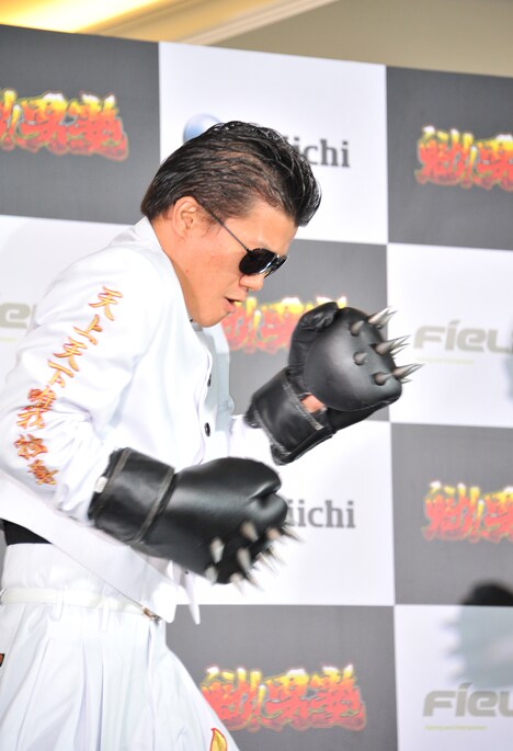 さらにイベントではDaiichiグループの天野常務が、氣志團と亀田兄弟を「CR魁!!男塾」の“応援團”に任命。綾小路と亀田興毅が任命状を受け取ると、綾小路が突然「応援團長は誰ですか? 團長が(綾小路と亀田興毅の)2人いるのはおかしくないですか? 俺『魁!!男塾』超詳しいからね。興毅くん生まれる前から観てるから。悪いけど譲らないよ」とケンカ腰に。亀田興毅もそれに挑発されるように「生まれる前から観てるから!」と応戦し、その場はあわや一触即発状態になる。そして綾小路が「ケンカ上等だよ!」と声を荒げ亀田興毅に殴り掛かったかと思いきや、2人は動きをスローモーションにして「さあ皆さん、今が撮影チャンスですよ」とプレス向けへのサービス演出だったことを明かし、場を和ませた。