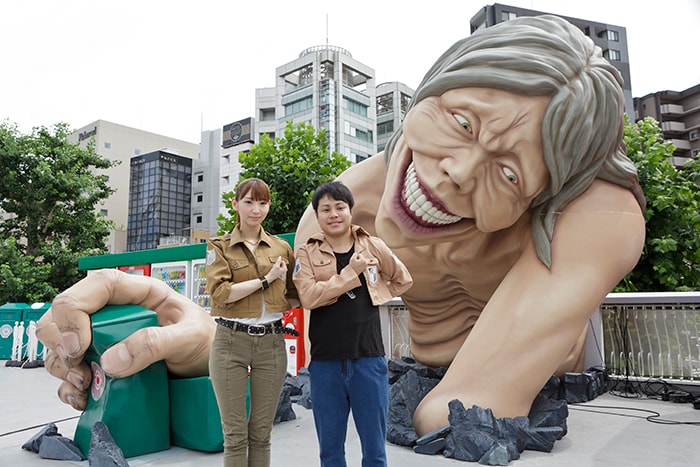 その後は園内に設置された高さ4メートルの「破壊の巨人」の除幕式が行われ、井上裕介は“兵団長”としてこの巨人から遊園地を守るべくその場で謎解きに挑戦する。しかしリアル脱出ゲームマニアである井上裕介は即座に謎を解いてしまい、「本物のゲームはあんなに簡単な問題は出てこないですよ! 前回もかなり難しかったですもん」とリアル脱出ゲームの難しさを力説した。