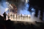 続けて撮影中のエピソードを語るコーナーに突入。長谷川が「僕が初めに立体機動装置で飛びました」とコメントすると、その場面を見ていたという三浦春馬が「素で叫んでいましたよね」とツッコミを入れる。「(三浦の)20mくらい上で、いつも寡黙な長谷川さんが『うわあああ』って叫んでるから、話しやすそうな人だなと(笑)」と人類最強の男の意外な一面を披露した。本郷は「監督が役者陣の話を聞いてくださる方で。冒頭のナレーションをやりたいと提案したら叶ったし、偉い人が着るマントを僕も着たいです、と言ったら『うん、じゃあ着ようか』となんでも叶えてくれて、ビジュアルを含めドラえもんです」と話すと樋口監督はドラえもんの声真似で「ありがとう」と答え、観客を爆笑の渦に巻き込んだ。