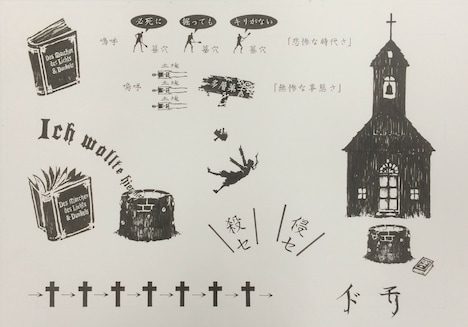 さまざまな考察が可能な「Marchen」を、ソガシイナが独自の解釈でマンガ化した「旧約Marchen」。Sound Horizonの楽曲において重要な意味を持つ歌詞も作中でビジュアル化され、ファンにうれしい仕掛けが施されている。登場する女優たちのシンボル、教会や井戸のイラストはソガシイナが「Marchen」の歌詞カードから再現。今後もページの随所にちりばめられていく。