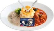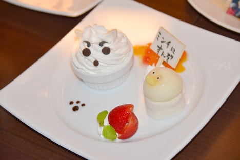 オープン時点で提供されるフードは、定春とエリザベスが並ぶ「永遠のライバルアイスプレート」や、沖田と信女がモチーフの「沖田 vs 信女の激闘2色シチュー」など計13種類。一方でドリンクは銀時をイメージした糖分たっぷりの「糖分王に俺はなる!!!」など計11種類が並ぶ。なおドリンクの注文者にはキャラクターのコースターもプレゼント。フード、ドリンクともに随時新メニューが追加される予定だ。