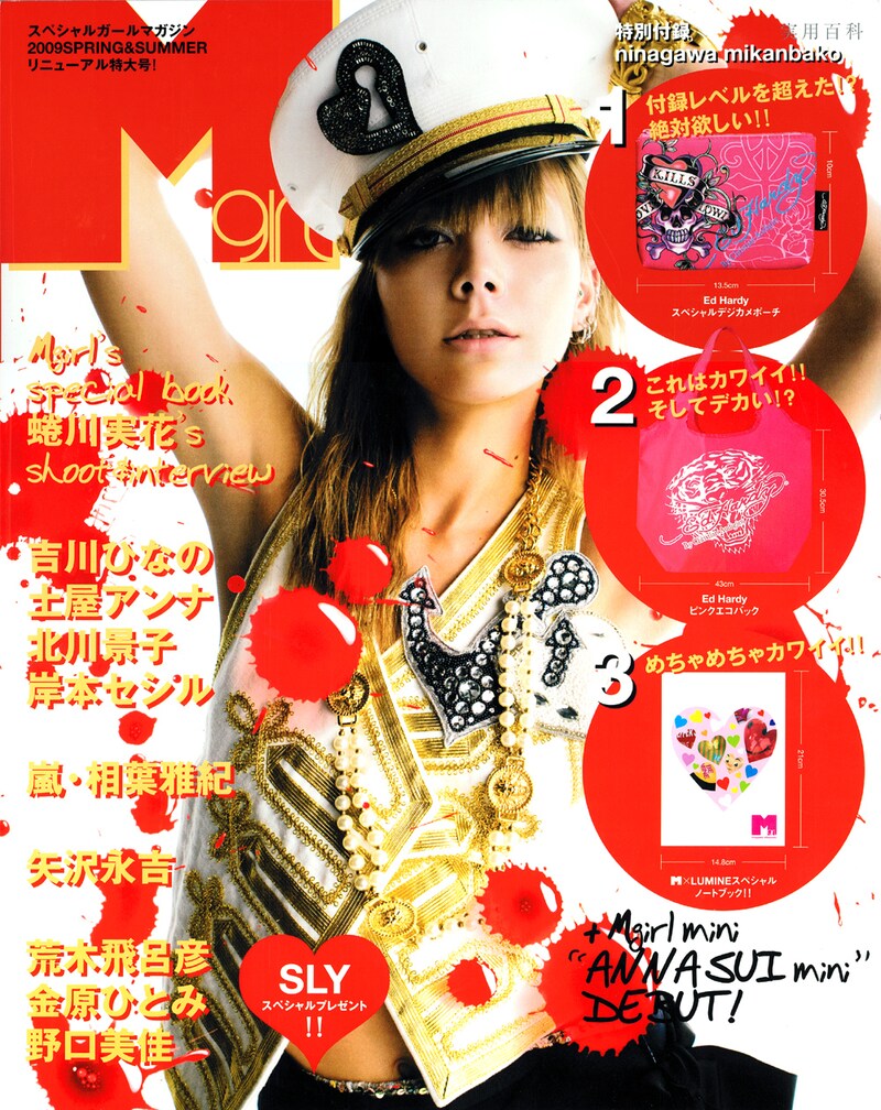 M girlは蜷川が責任編集を勤める女性ファッション誌。旬なタレントや人気モデルを起用したファッション紹介のほか、荒木や「蛇にピアス」の金原ひとみ、ピーチ・ジョンの社長野口美佳らとの対談が収録されている。