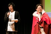 「ポンコツクエスト~魔王と派遣の魔物たち~」は、魔王に使える魔物・カクとイムラのグダグダな日常を描いたコメディアニメ。2013年よりYouTubeにて、月イチペースで新作が公開されている。カクとイムラの声で注意事項が読み上げられたあと、企画の新海岳人、プロデューサーの堀越大、そして監督・脚本・声優を務める松本慶祐が登場し、緩やかな空気の中イベントはスタートした。