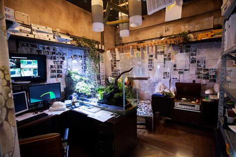 体育館に建てられた巨大なセットで撮影されたのは、連続猟奇殺人犯“カエル男”を追う沢村久志役の