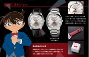 アニメと映画の20周年を記念したこの腕時計は、江戸川コナン、灰原哀、服部平次、怪盗キッドをイメージした4種類。文字盤にはそれぞれ、蝶ネクタイ型変声機、毒薬「APTX4869」、交差する刀、クローバーのモチーフが描かれている。時計の裏面には、アニメ「名探偵コナン」20周年のロゴとシリアルナンバーを刻印。各2000点限定で販売される。価格は32184円で、商品は4月末より順次届けられる。