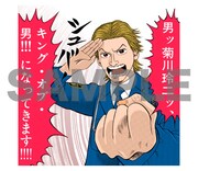 用意されたのは全40種類の絵柄。菊川玲二、 日浦匡也らお馴染みのキャラクターによる、「感謝!」「面白ぇ。」などの台詞が入ったスタンプがラインナップされている。そのほかにも月原旬や黒河剣太といった人気キャラも登場した。
