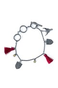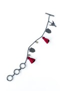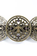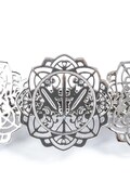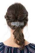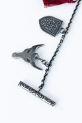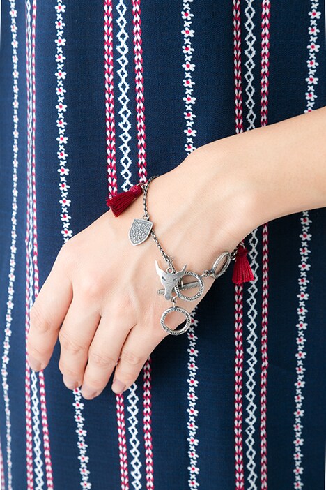 登場したのはアルスラーンの紋章をモチーフにしたリング、アルスラーンとダリューンそれぞれの紋章をデザインに落としこんだタッセルピアス。さらにアルスラーン、ダリューン、ナルサスの特徴をイメージしたブレスレットとバレッタが3種ずつラインナップされた。