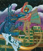 これは8月6日から9月6日にかけてMangasickにて開催される、逆柱による同タイトルの個展「蜃楼紀」にあわせて刊行されるもの。画集には風景画をはじめ、怪獣や乗り物モチーフのペインティングなど近年の作品が主に収録される。細密なモノクロ画の連作や、台湾の建物や看板に注目したという新作も見どころだ。また造本もこだわっており、表紙には金箔が使用され、本体にも現在生産されていないという台湾の包装紙が手作業で施された。