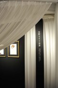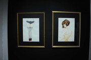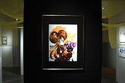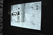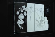 「鼻下長紳士回顧録」エリアは、天井から白い羽がぶら下がる装飾が施された。パリの娼館を舞台にした同作の、妖しげながら麗しい世界観が再現されている。和の空間が広がる「さくらん」の展示コーナーでは艶やかな格子の奥に作品が並べられており、単行本未収録につきファンの間では“幻”とされてきた「さくらん」第2部の原稿もお披露されている。