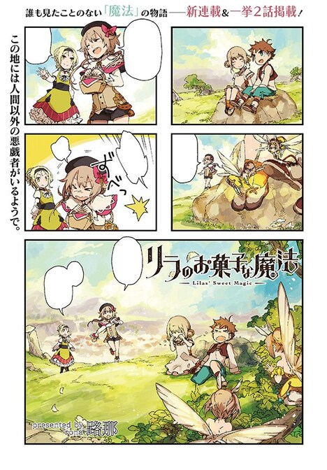 「リラのお菓子な魔法」は、お菓子の出張販売を行いながら魔物に関わる事件を追う少女・リラとイキシアの冒険譚。この世界では願いを魔物に捧げると、代わりに魔法を授かり魔法使いになることができる。物語は、遺跡調査をする考古学者・ルーとの出会いから動き出す。